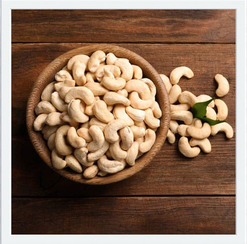 . White cashew nuts are utilized in both savory and sweet dishes because of their versatility in the kitchen. They frequently lend a rich, creamy texture to stir-fries, curries, salads, and rice dishes. Additionally, cashew nuts can be mashed into a paste and used in vegan cheese recipes or used to make dairy-free substitutes like cashew milk. They are frequently used in baking, confectionary, and as a garnish for cakes and ice creams in desserts.