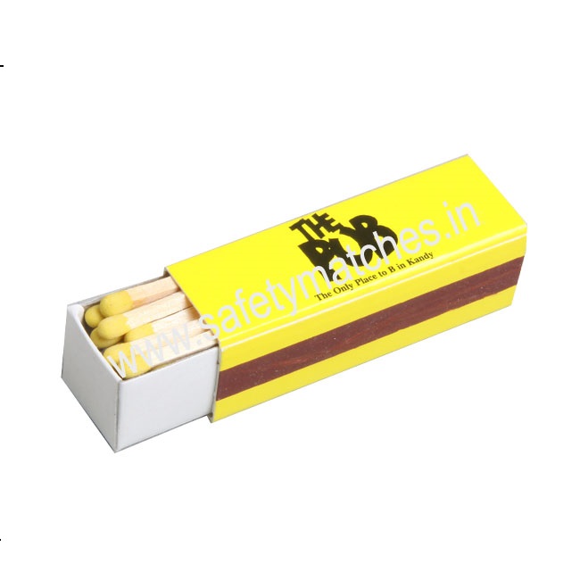 Key attributesOther attributesPlace of Origin Tamil Nadu, India Type Safety Usage Household Color Of Match Head Black Brand Name Buyer brand Model Number PM003 Product name Promotional Matches Size Of Splints 38mm, 47mm Side Friction Plain Logo Customized Logo MOQ 1000 Head Color Red Brown Black Size